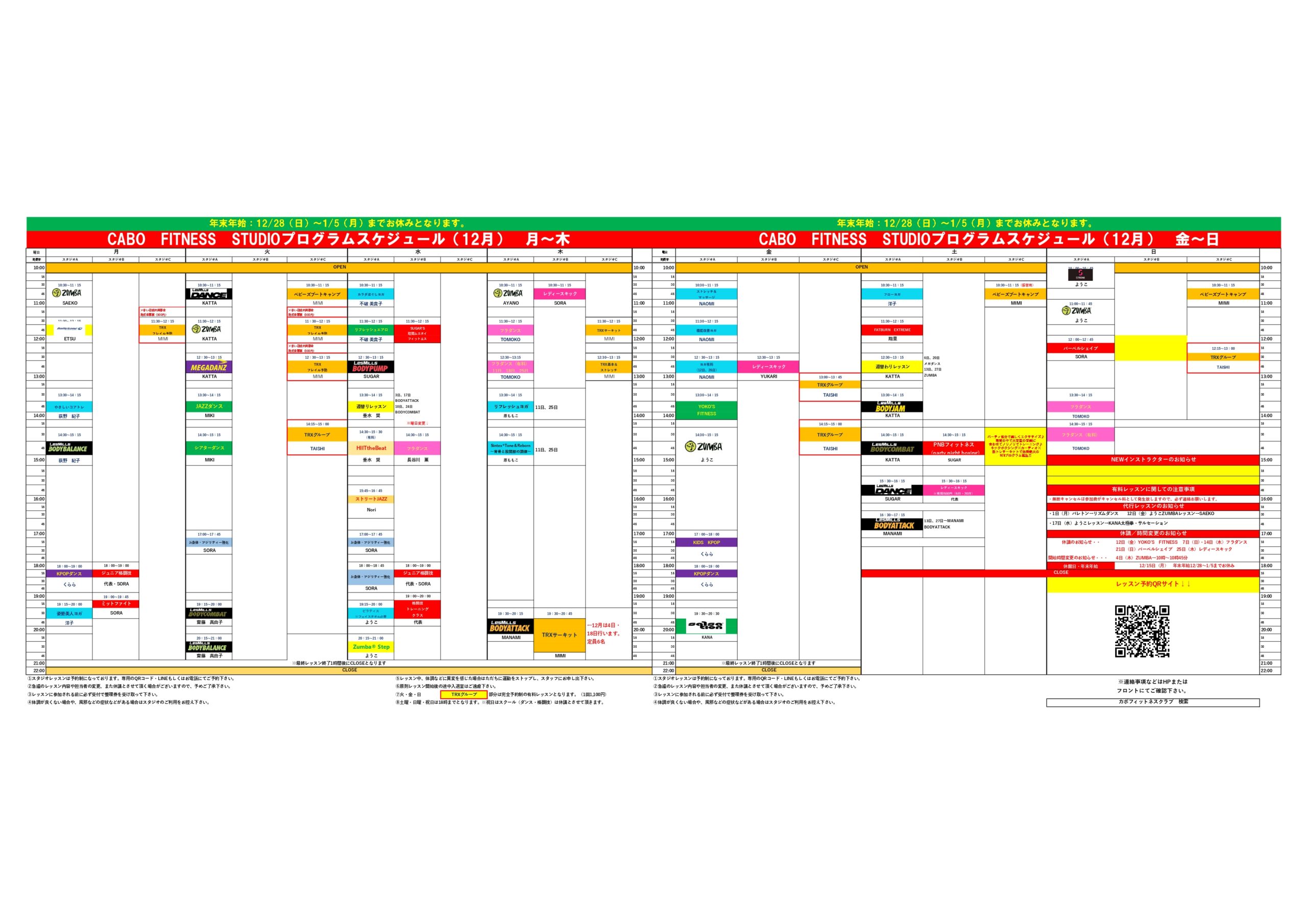 ※祝日はスクール(ダンス・格闘技)は休講とさせていただきます。